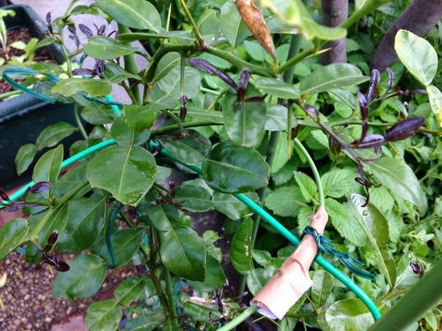冬越しさせた大切なコブミカンの木がかなり元気になってきました。新芽が黒っぽいのが気になりますが、やっと成長してきました(左の写真)。ボルシチに使うビーツ、4つほど使わずにいたら花が咲き出しました、どんな花を付けるのかちょっと楽しみ(右の写真)。