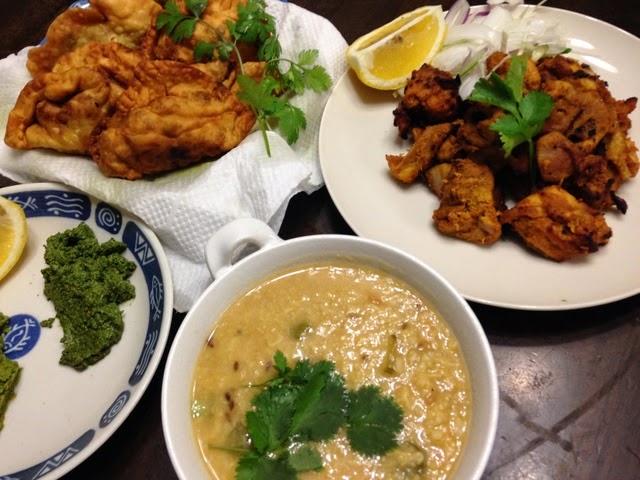 ミントペースト作ったので、やはりインド料理。サモサ、タンドリーチキン、ダルカレー、これに本日作ったミントペースト、さらに以前作って冷凍しておいたチャツネ(パクチーのペースト)。見栄えは相変わらずですが、前よりは進歩してます(写真左)。右の写真は前日作ったトムヤムクンとソムタム。いずれにしても作る時間はかなり短縮してます。