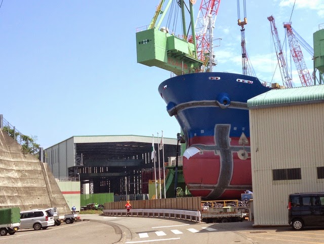大三島では造船所の横を通ります。大きな船を修繕しているのだと思いますが、こんなに近くで見れてちょっと感動。
