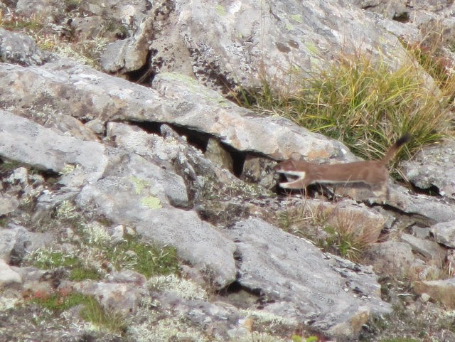 700mくらい登ると森林限界を越え、岩がごろごろしだします。この岩のごろごろしているところからナキウサギの鳴き声がいたるところから聞こえてきます。時々ナキウサギ、シマリスがひょこっと顔を出し、またすぐに隠れます。獲物を狙うオコジョも時々顔を出します。するとナキウサギの鳴き声は聞こえなくなり、ナキウサギやシマリスはみんな消えてしまいます。