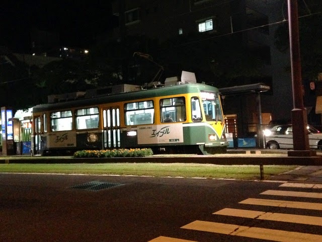 夜ランは、暗いと躓くので市電の線路沿いを走りました。なかなか夜の鹿児島もいいものです。鹿児島駅を往復しました。