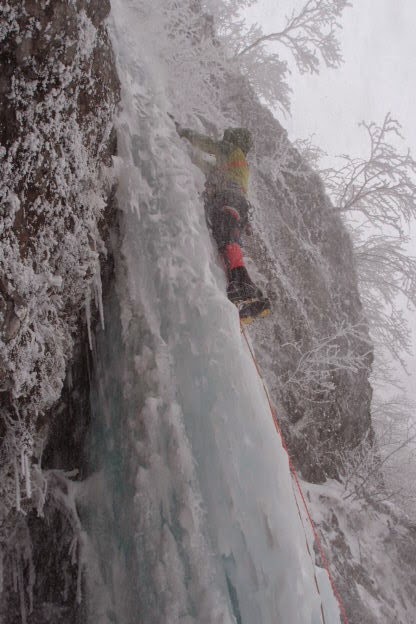 今日は何年かぶりに大同心大滝を登りに行きました。ガスが出ているのでなかなか滝が見えなかったのですが、やっと見えた滝は、上部のバーティカル部分のアイスがまだ未発達。とっても細くてちゃんと登れるかなと不安になってしまいます。