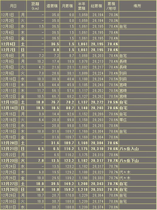 今年は、もちろん年間3000kmをまず目指します。ちゃんとストレッチしてハムの痛みを完全に取り払いたいと思います。12月は体調が悪かったり仕事で時間が取れなかったりして故障中の走行距離と同等の180kmでした。1月はまずは300km突破ですね。1月は宮古島ウルトラ、勝田全国マラソンの2レースです、頑張りましょう。