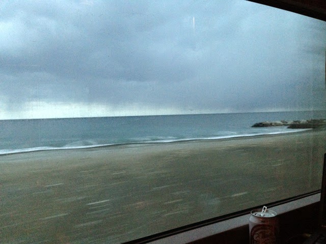 日本海に沈む夕日、トワイライトエクスプレスから見る最高の景色なのですが、残念ながら雲が厚くて夕日は見えませんでした。