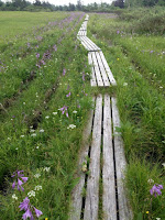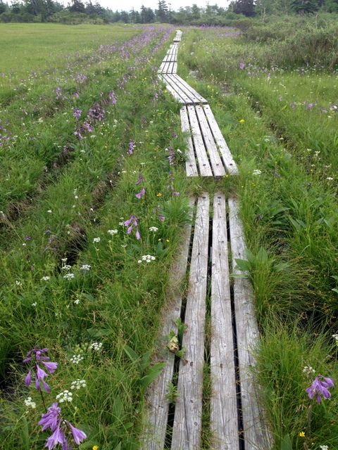 五色岳に向かう木道はとっても気持ちいいです。高山植物は花がいっぱい咲く時期は過ぎていたようですが、湿原の中の木道がしっかりしていてとっても気持ち良く走れます。