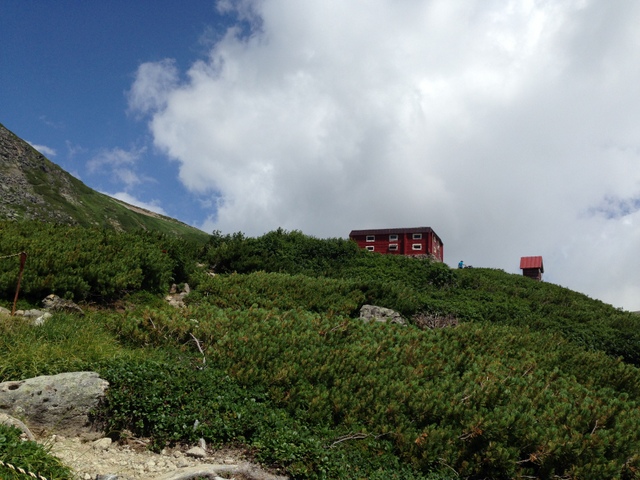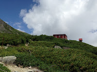 白雲岳手前の避難小屋、ここは立派な小屋でした。夏場は人がいて管理しています。水場もしっかりしています。