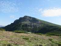 五色岳から見る旭岳はまだかなり遠いです(写真左)。このあたりから動物をよく見かけるようになりました。ただ今回はリスのみで、ナキウサギと出合うことはありませんでした。
