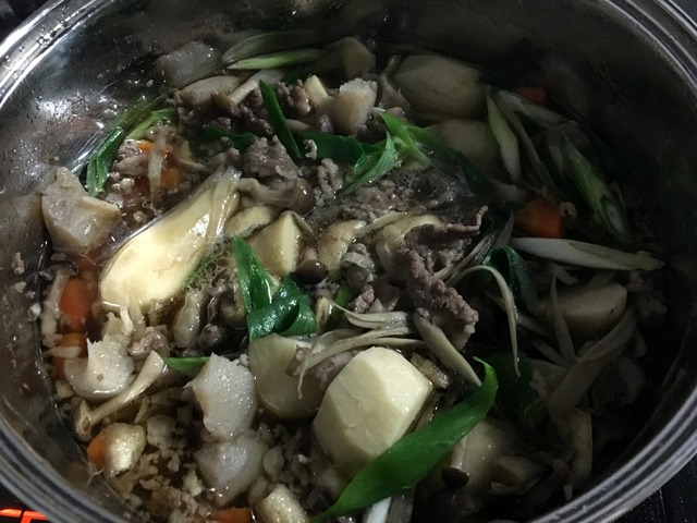 昨晩は、自宅で屋内芋煮会しました。JAで買った里芋が安くて美味しい、わたしは今日は買い出し係。