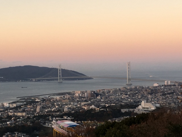 朝の明石海峡大橋と神戸、ちょっと太陽が高くなってしまいました。