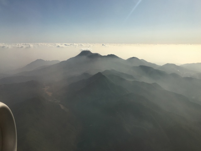 下の写真、たぶん雲仙だと思うのですが、飛行機が山の近くを通るのです。いやあ良い景色だった。雲仙はたいへんな自然災害のあった山ですが、今は大人しいそうです。