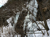 本日、行った群馬県は西上州の相沢奥壁の大氷柱、とっても良い滝でした。八ヶ岳でいうと南沢大滝とよく似ています。でも、人は少なく、じっくり登れて、人手による落氷の危険も少なく楽しかったです。気温が高いので氷が柔らかく、短いスクリューが中心のわたしは、ちょっと不安もありまたけど、アックスもアイゼンもよく刺さったので、とっても楽しくリードできました。