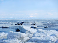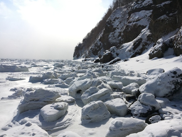 昨年も同様な時期に来たのですが、流氷はまったくなく、気温が高くて氷も登れる状態ではありませんでした。一年待って、また、やってきました、網走能取岬の流氷アイスをしに。