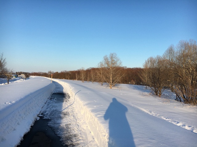 網走能取岬のアイスクライミングが早めに終わったので、北見にもどって夕方ランニングしました。あまりに天気良くてもったいないですから、と言うより、今月のあまりの走行距離の少なさに少しでも挽回したいと思ったのが正解ですね。