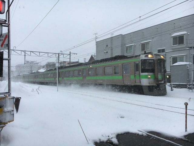 朝になるとだんだん風が落ち付いてきたので、吹雪の小樽をジョグで探検しました。こんなに天気が悪いのにバスは動いていました。列車も普通列車は運転していました。さすが北海道です。千歳の飛行機は午前中は全滅でしたが、午後から動き出して、わたしは幸運にも予定通り東京へ移動できました。