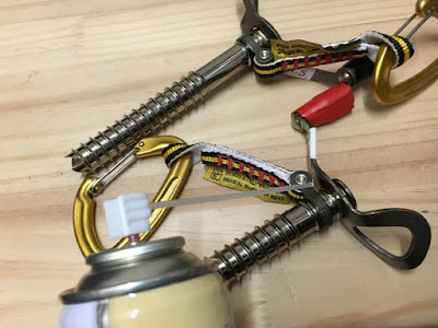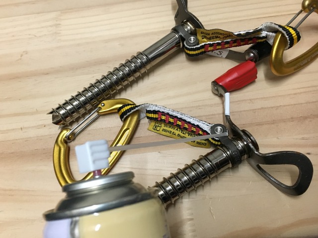 もう一つ、前回のアイスクライミングで問題がありました。グリベルのスピーディですが、アイススクリューの首についている金具が錆びて、うまく滑らず、氷にハンドルでねじ込むときに一緒にカラビナが回って邪魔で仕方ありませんでした。ということで、潤滑剤を注入、これで次回は大丈夫だと思います。