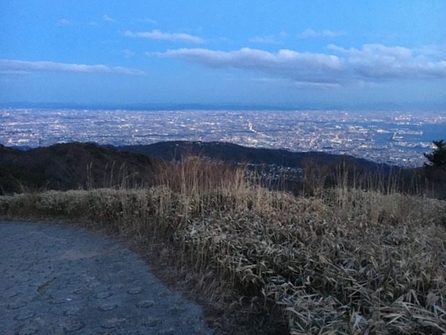 摩耶山ついたころは、もう少し日に赤みが出てきています。ずっと天気がよくて神戸や大阪の景色がとってもクリアです。神戸はやっぱり良い街ですね。