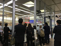 広島駅、警察官がいっぱいいます。路面電車は動いていたので原爆ドーム方面に向かいました。16時くらいから平和記念公園の周りは完全にシャットアウト。わたしは原爆ドームの近くにいましたたがかなり遠ざけられました。周辺は大混雑です。遠くから来ている人も多いようです。