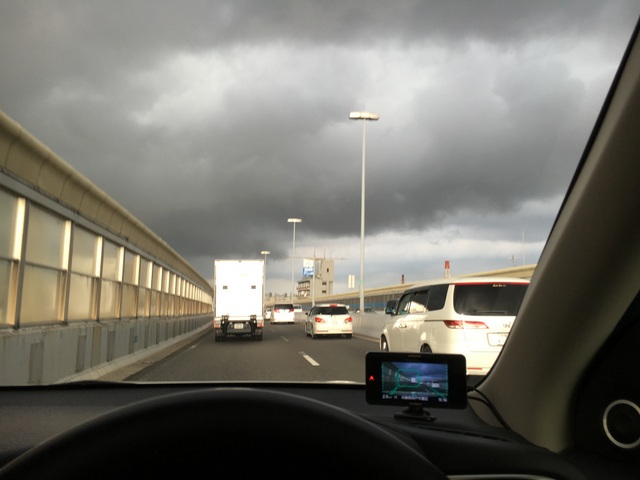 先日、阪神高速を走っていたら黒い雲が通り過ぎていくのです、ここだけ雨なんですね。遠くではこの雲の下で雨が降っているのが見えるんですね。