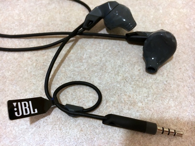 ランニング用のイヤホン、いつも2000円くらいの安いもの使っています。すぐに断線するので出来るだけ安いのにしてました。でも今回は、ちょっとだけ高いのにしてみました。家電量販店で聴き比べていたら、さすがJBL、それほど高くないのに、いつものカシャカシャ感がないのですね。断線せずに長持ちしてくれるかわかりませんが思い切ってJBLにしました。これ耳に引っ掛けるフックはないですが、外れにくいです。