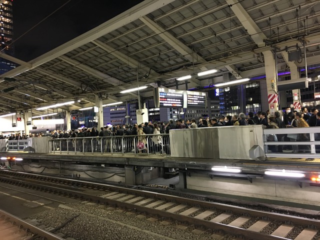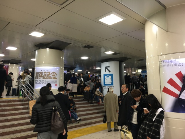 自分が予約した新幹線は19時すぎ、2時間遅れで動き出しましたのでぎりぎり間に合う可能性もありましたが、到着しても新神戸で地下鉄最終が終わっていて、あとはJRお得意の勝手に帰ってとなることは目に見えていたので、諦めました。早く出る列車の自由席に並ぼうかとも思いましたが、すでにホームは満杯状態、並んでも乗れるのは自分の予約した新幹線が来るころだと。