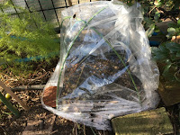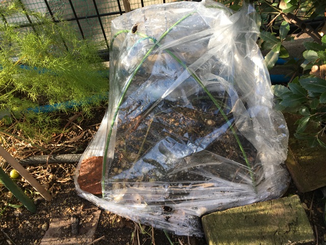 株はそのまま移動せず直上にして簡易ビニルハウスで冬越しします。昨年一部をこんな形で直植えで冬越してみましたが大丈夫でした。そんなわけで、今年は家の中には一切持ち込まないことにしました。さて冬越し成功するか?