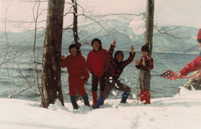 右の写真は、春合宿。十和田湖から八甲田山をスキーでトレースしました。十和田湖は除雪が始まったところで、気を付けないと車道に掘られた大きな溝に落ちてしまうのですね。