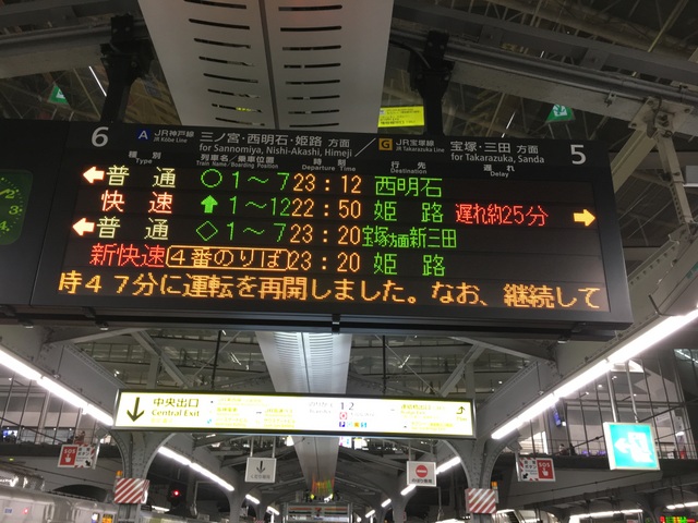 どれが早く三ノ宮に着くのか?? 若いJR職員の方に聞いたら快速だそうです。しかもその理由を詳しく教えてくれました。彼は鉄ちゃんの職員さんですね 彼にかけて快速で帰ります。