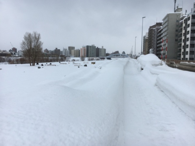 体調回復してきたので今朝は豊平川を雪道ランしました。以前から欲しかったモンベルのミトンを昨日手に入れたので、早速使ってみました。