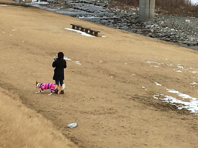 河川敷でフリスビーの練習していたの見かけましたが、松本の犬は暖かい恰好してました。