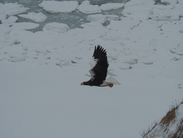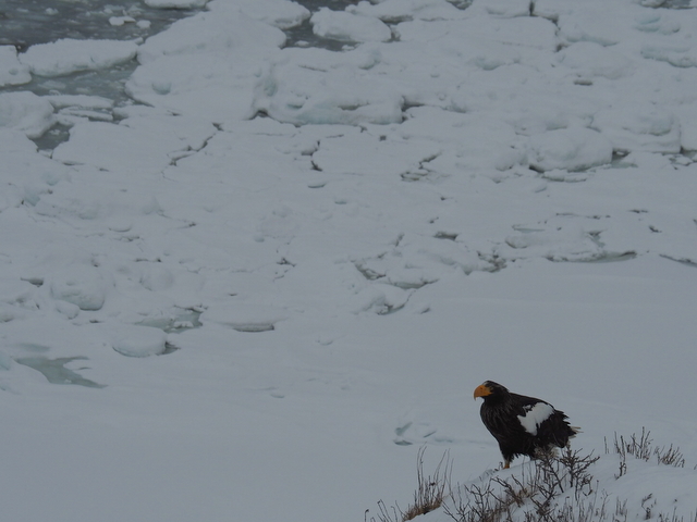 オオワシは日本最大級の猛禽類。渡り鳥で流氷とともにやってくるんだそうです。格好いいでしょ、すごく近くで見ることできました。