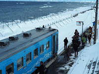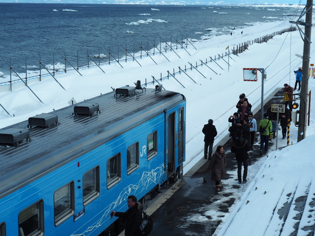14時過ぎると天気が悪くなってきて、この当たりで散策はやめようかなと思っていたら流氷のよく見えるスポットを比較的駅に近い場所で見つけました。流氷は、びっしり詰まっているよりも、適当に海面が見えた方が絵になりますね。