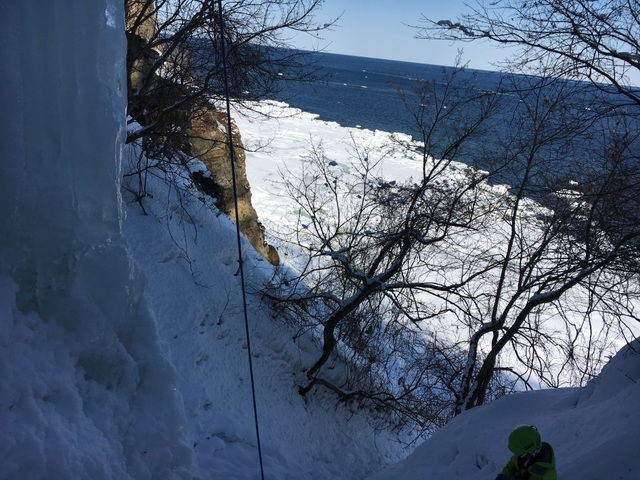 今年も流氷の見えるアイスクライミング、北海道は網走能取岬にやってきました。今年は東京から女子クライマー二名も参加し、いつもの北海道在住のSさんと総勢4人となりました。