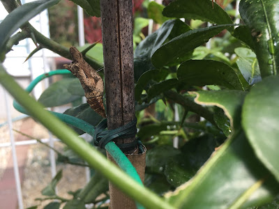 写真はコブみかんに着いたアゲハの蛹。本当は二つあったのですが、一つだけ無事に冬越ししました。そろそろ成虫になると思います。楽しみ。でもここ数日とっても暖かいので出張から帰ったら空っぽになってるかも。