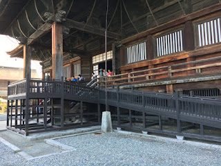 もう一つ、これも初めて知りました。下の写真は車いす用のスロープです。かなり大規模なスロープです。本堂に上がるのはきつい階段ですから、このスロープは車いす利用者にはかなりありがたいと思います。こういったお寺に、こんな大がかりなスロープがあることにとても感動しました。宗教心のあまりない私ですが、さらに善光寺ファンになりました。